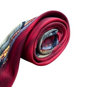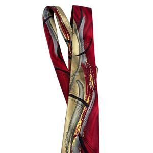 J Jerry Garcia Capillaries Collection 52 Satin Red Abstract Print Neck Tie 3.25"