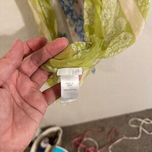 J. Jill 100% Cotton Made in India Yellow & Blue Floral Frayed Edge Scarf