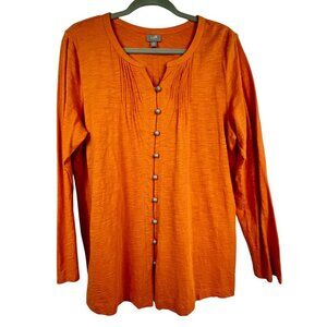 J. Jill 100% Cotton Pleat Back Button Front Long Sleeve Orange Tunic Size 1X