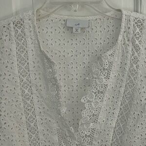 Excellent condition! No flaws! J. Jill Cotton White Eyelet Tunic Top Shirt Blouse
