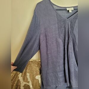 J. Jill 100% Linen Blue Long Sleeve Blouse Size Large