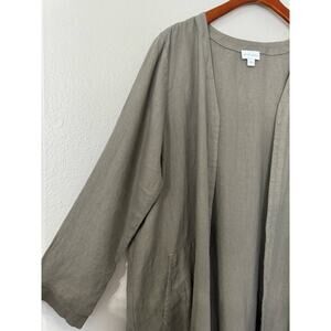J. Jill 100% Linen Long Line Open Front Ruffle Cardigan Size L