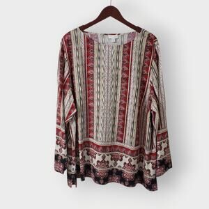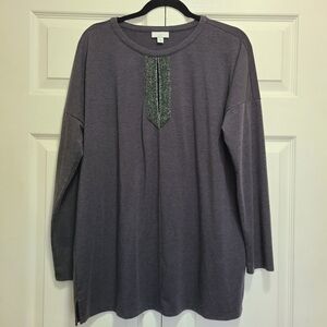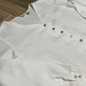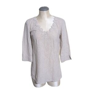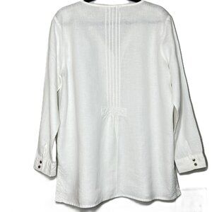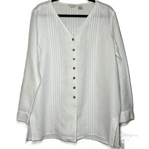 J. Jill 100% Linen Long Sleeves Button Up Pintuck Lace Tunic Medium Women's