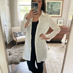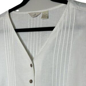 This beautiful 100% linen button up white tunic from J. Jill has vertical pleating and lace trim detail.