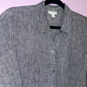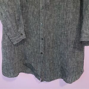 J Jill 100% Linen M Shirt in Gray Longline Lagenlook Button Collar