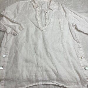 J. Jill 100% Linen Tunic Top Women's Large Oversized Button Side High Low Hem