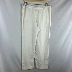 J Jill 100% Linen Wide Leg Pants Women Medium Petite White Elastic Waist Pull On