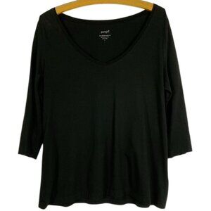J. Jill 100% Pima Cotton 3/4-Sleeve V-Neck Tee, Black, Large