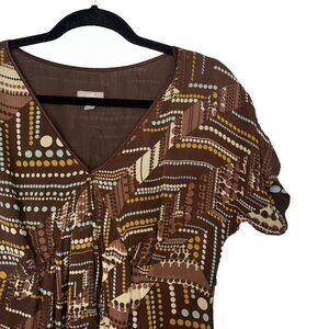 J. Jill 100% Silk Brown Abstract Dot Print Short Sleeve Dress - Size 12