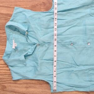 J Jill 100% linen boho aqua blue sleeveless high-low button-down top, women's M