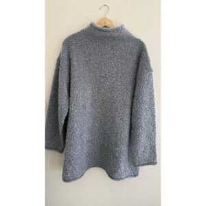 J. Jill 2X Tunic Sweater Blue Pullover Mock Neck Acrylic Mohair Textured Fuzzy