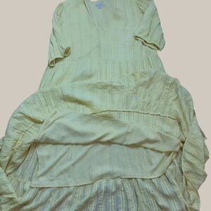 J. Jill 2X Yellow Pineapple Jacquard Tiered Maxi Dress Cottagecore Boho Lounge