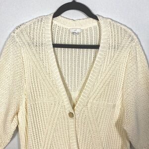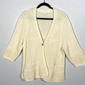 J. Jill 3/4 Sleeve Cream Cotton Knit One Button Cardigan size 2X