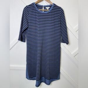 J. Jill 3/4 Sleeve Navy Striped Shift Dress Tencel Denim Shirt Tail Size Small