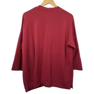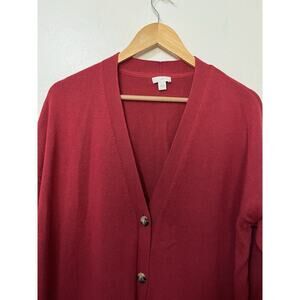 J Jill 3/4 Sleeve V Neck Button Cardigan Size L Burgundy Red Career Office
