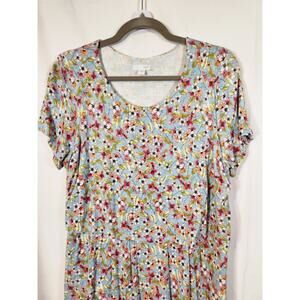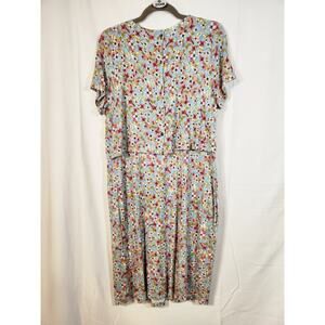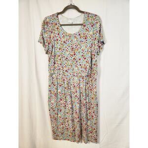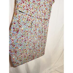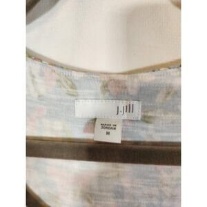 J. Jill $99 Medium Blue Pink Green Floral Overlay Stretch Knit Dress w/ Pockets