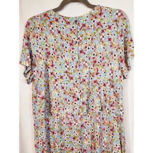 The J. Jill Blue Pink Green Floral Overlay Pockets Rayon Stretch Knit Dress is a stylish and versatile piece perfect for a variety of occasions. With a flattering knee-length design, short sleeves, and a scoop neckline, this dress offers comfort and style. The floral pattern and layered accents add a touch of nature-inspired charm, while the blue color and spandex material give it a trendy and designer feel. Perfect for travel, weddings, parties, or casual outings, this dress is a must-have for any woman's wardrobe.