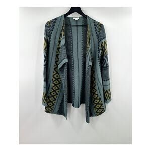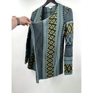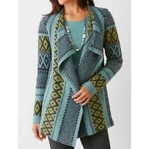 J. Jill Alpaca Wool Tribal Knit Sweater Fair Isle Open Front Cardigan Jacket XS