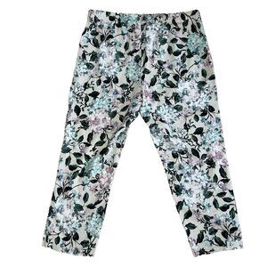 J Jill Ankle Pants Floral Linen Blend Hem Buttons Size Large