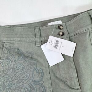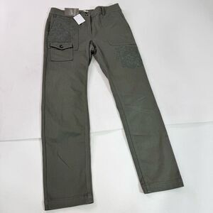 J Jill Ankle Pants Womens 8 Army Green Embroidered Straight Floral Cotton