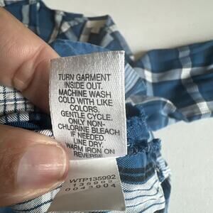 J. Jill Atlantic Plaid Tunic Top size XS Petites Hi-lo Button Back blue