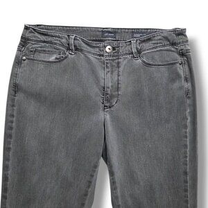 J Jill Authentic Fit Slim Ankle Jeans Womens 8 Gray Button Hem Mid Rise