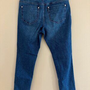 J. Jill Authentic Fit Slim Ankle fit, sz 4, 29" inseam, no whiskering, medium dark blue, no stains, worn once, straight leg fit, ankle opening just over 6",