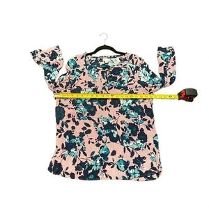 J. Jill Beautiful Blooms Mauve Floral Ruffle Sleeve Blouse Tie Neck Size M Women