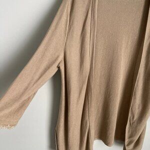 J Jill Beige Linen Blend 3/4 Sleeve Fringed Open Cardigan