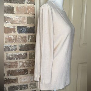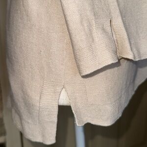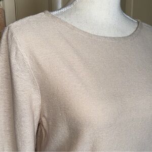 J. Jill Beige Linen Cotton Knit Sweater 3/4 Sleeve Boatneck Vented Hem & Cuffs