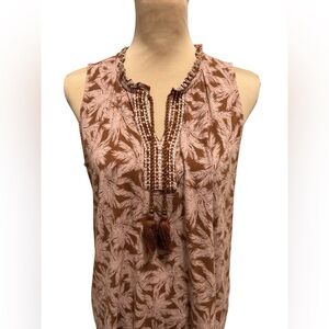 J Jill Bellissima Tasseled Top Peasant Blouse Tassel Split Neck Floral Sz Medium