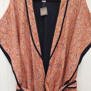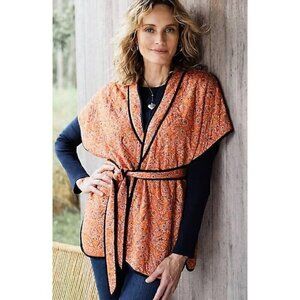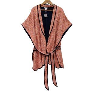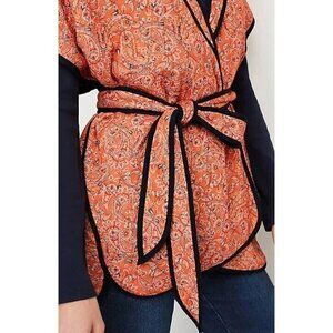 J Jill Belted Quilted Ruana Size XL-3X NWT Orange Paisley Belted Jacket Kimono