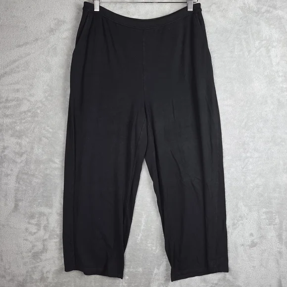 Experience the perfect blend of comfort and style with these J. Jill black ankle cropped pants. Crafted from a soft, matte-finish fabric, they offer a relaxed fit ideal for casual outings. The elastic waistband with a drawstring ensures a snug fit, making them a versatile addition to your wardrobe.