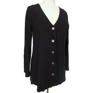 J. Jill Black Button Front V-Neck Long Sleeve Rayon Stretch Top SZ PM Side Vents