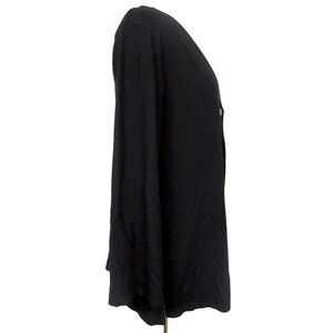 J. Jill Black Button Front V-Neck Top, Long Lleeves Rayon Stretch Fabri Tunic Length 4.5" Side Vents and a Relaxed Flowing Fit.