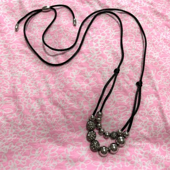 J. Jill Black Cord Rhinestone Bead Sparkle Adjustable Necklace