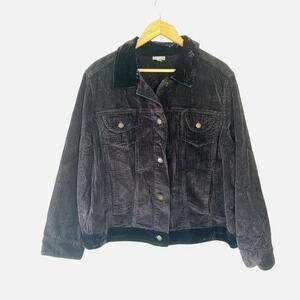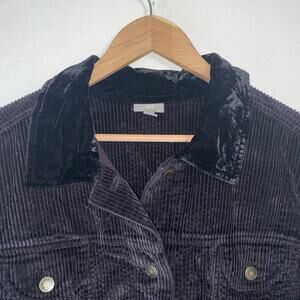 J Jill Black Corduroy Trucker Jacket SZ 2X Velvet Collar Trim Casual Preppy