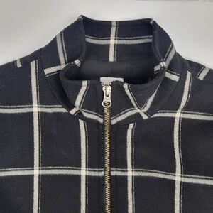 J. Jill Black Cream Windowpane Print Fill Zip Front Jacket Lined Size Small