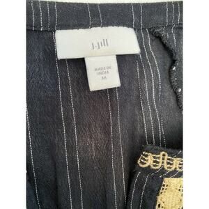 J Jill Black Embroidered Boho Long Sleeve V Neck Top Medium