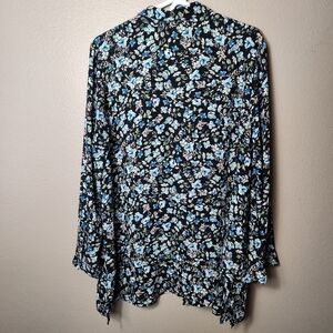 J. Jill Black Floral Collared Buttonfront Flowy Layered Tunic-Size XL