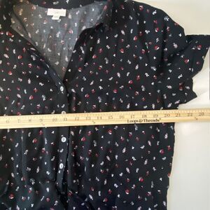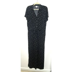 J Jill Black Floral Tie Waist Wide Leg Short Sleeve Casual Flowy Jumpsuit Sz L