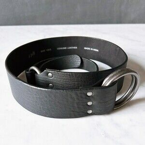 J Jill black leather belt with double silver rings. Women's size XS belt is adjustable: tuck end into smaller ring or let hang. Belt is 45-1/2" long x 1-7/8" at the widest section and 1" wide at the narrow section. Excellent condition.