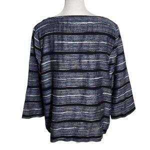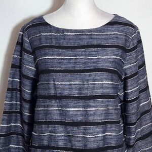 J. Jill Black Stripe Textured Top Size Medium Petite Pure Jill Boxy Stripe Top