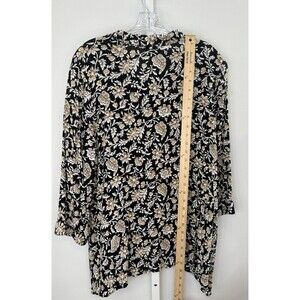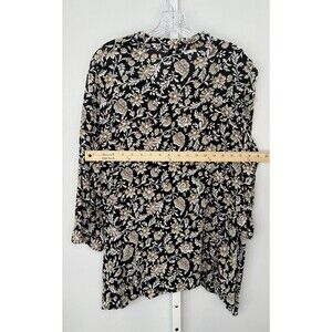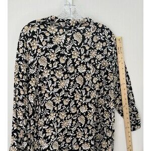 J. Jill Black Tan Floral Rayon Button Front Blouse L Boho Artsy Cottagecore