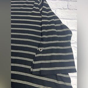 Elegant black striped top w/ 3/4 length sleeves. Soft pima cotton fabric.
