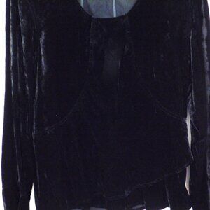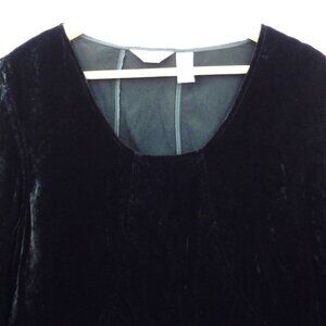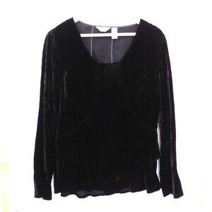 J. Jill Black Velvet Top Womens Large Tall Bell Sleeves V Neck Y2K Ruffle