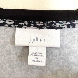 J. Jill Black White Aqua Ditsy Floral Full Zip Activewear Hoodie Jacket Size 3X