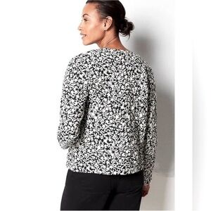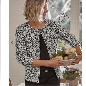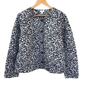 J Jill Black White Garden Quilted Button Up Long Sleeve Coat NEW