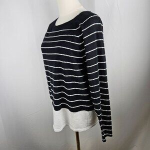 J. Jill Black & White Textured Striped Pullover Sweater Top Medium Casual Office