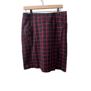J. Jill Black and Red Checked Faux Wrap Stretch Pencil Skirt Size Small